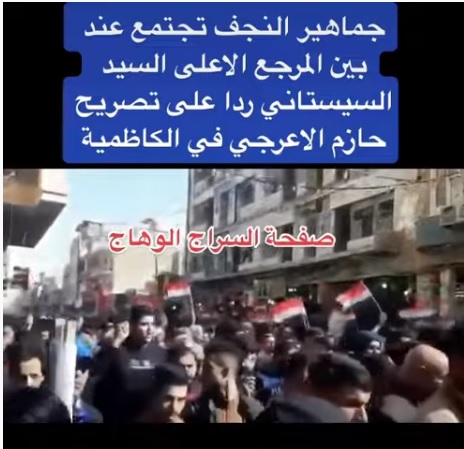 بالفيديو ::الجماهير تجتمع عند بيت المرجع الاعلى السيد السيستاني ردا على تصريح حازم الاعرجي