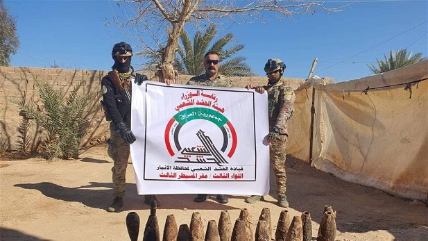 وفي ذات السياق، "عثرت قوة أخرى من حشد محافظة الانبار على 4 مقذوفات هاون وجليكان معبأ بمادة (c4) في الصحراء الغربية بالمحافظة، تم اتلافها بشكل آمن".