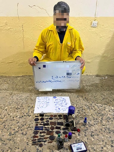 وأوضحت، أن "عملية القاء القبض على المتهم تمت في قضاء الشرقاط بمحافظة صلاح الدين بعد استحصال الموافقات القضائية وبالجرم المشهود وبحوزته مختلف الأختام، حيث تم اتخاذ الإجراءات القانونية اللازمة بحقه لإكمال اوراقة التحقيقية".