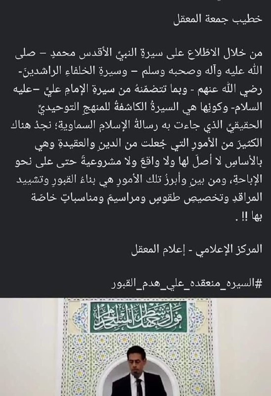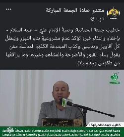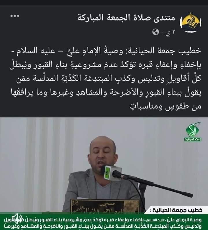 حصلت وكالة انباء براثا على نماذج من التحريض الاجرامي الارعن من قبل مرتزقة الصرخي باوامر منه لهدم مراقد اهل البيت عليهم السلام حيث طالبهم بالدعوة الى هدم المراقد المقدسة من خلال صلوات الجمعة التي اقاموها في مراكز الشر والعدوان في عموم العراق