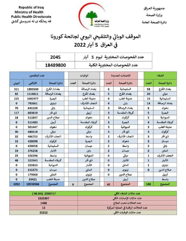الصحة تعلن الموقف الوبائي