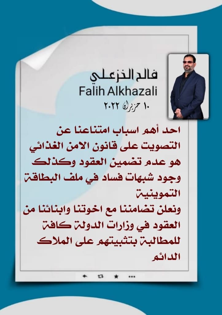 بالتغريدة.. النائب فالح الخزعلي يكشف عن شبهات فساد جديدة في “الأمن الغذائي”
