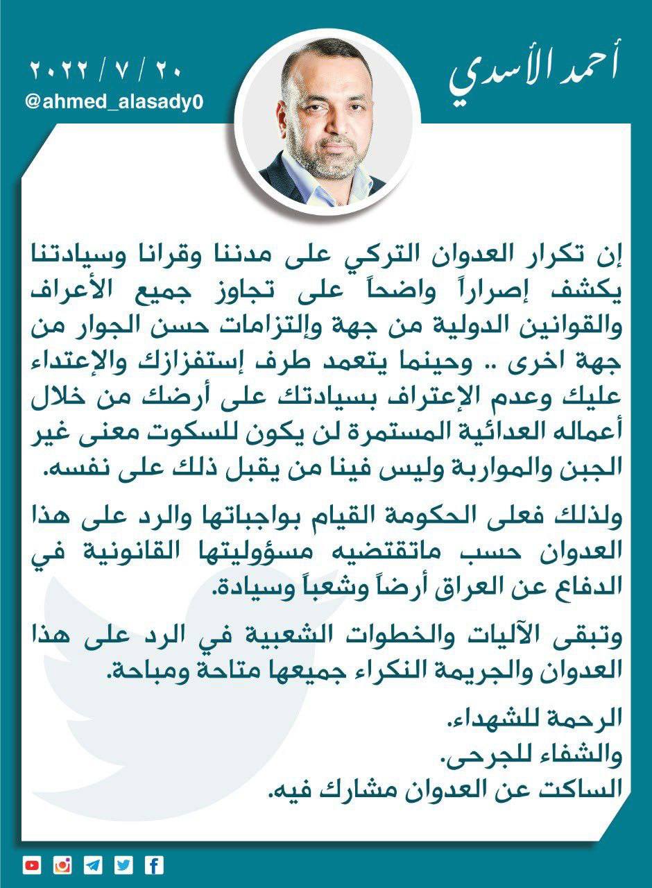 الاسدي الخطوات الشعبية متاحة للرد على القصف التركي
