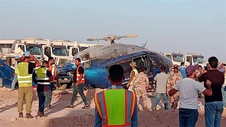 وقال المصدر إن "خللاً فنياً اثناء الاقلاع ونتيجة سرعة الرياح يسقط طائرة هليكوبتر تابعة لاحدى الشركات النفطية التابعة ضمن صحراء النخيب".
