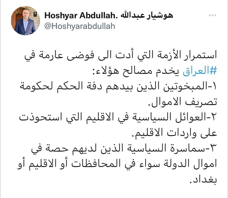سياسي كردي يحدد ثلاث جهات مستفيدة من استمرار الازمة السياسية