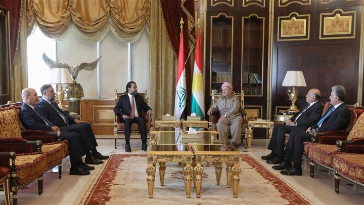 بحث رئيس مجلس النواب محمد الحلبوسي ورئيس الحزب الديمقراطي الكردستاني مسعود بارزاني، اليوم الاحد، اجراء الانتخابات المبكرة وتشكيل حكومة جديدة.