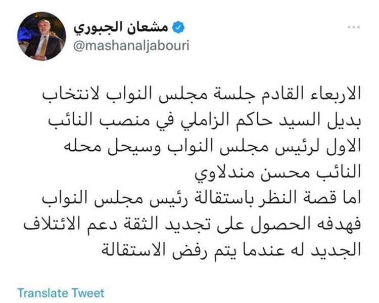 مشعان الجبوري يكشف هدف استقالة الحلبوسي (تغريدة)