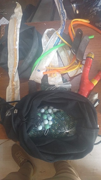 وأضاف البيان، أن "الأجهزة الأمنية المختصة تمكنت من القاء القبض على متهمين اثنين بحوزتهما كرات زجاجية وادوات لرمي هذه الكرات على قواتنا الأمنية، كما ضبط بحوزتهما دروع واقية وقناع تخفي للوجه وعصي عدد ٢، حيث تم اتخاذ الإجراءات القانونية اللازمة بحقهما لإكمال أوراقهما التحقيقية".