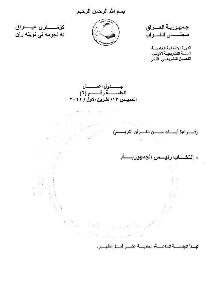 وبحسب وثيقة ، فان "جدول اعمال الجلسة رقم (6) تتضمن انتخاب رئيس الجمهورية".
