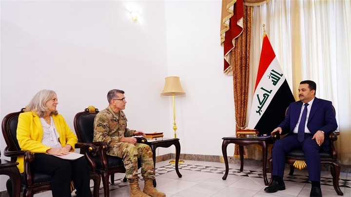 وقال مكتب السوداني، في بيان ، إن الأخير "استقبل سفيرة الولايات المتحدة الأمريكية لدى العراق آلينا رومانوسكي، وقائد قوات التحالف الدولي الجنرال ماثيو مكفارلن والوفد المرافق لهما؛ لبحث استمرار التعاون والتنسيق الأمني في مجال محاربة الإرهاب ضمن إطار المشورة والتدريب، وبما يحفظ سيادة العراق ويساعد في تنمية قدرات القوات الأمنية العراقية".