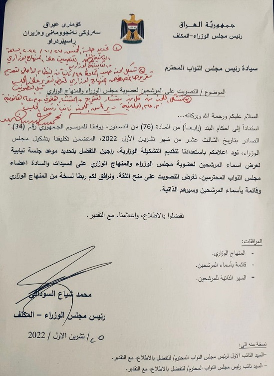 حدد رئيس مجلس النواب، محمد الحلبوسي، يوم غد الخميس، موعداً للتصويت على المنهاج الوزاري والكابينة الوزارية لرئيس مجلس الوزراء المكلف محمد شياع السوداني.
