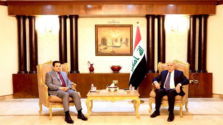 بحثنا مع وزير الخارجية د.فؤاد حسين، ملفات ضبط الحدود ومنع المتسللين وتهريب المخدرات، وكذلك سبل تعزيز العلاقات مع دول الجوار، وأكدنا موقف العراق الثابت بضرورة إنهاء مخيم الهول السوري، تعزيزاً للأمن والسلم الدوليين .
