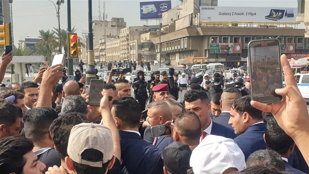 استمع وزير الداخلية عبد الأمير الشمري، اليوم الاحد، لمطالب المفسوخة عقودهم من الداخلية والدفاع في ساحة التحرير بالعاصمة بغداد.