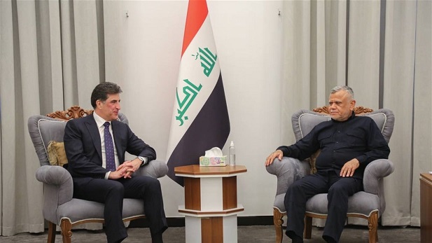 وذكر بيان لمكتب العامري ان "رئيس تحالف الفتح استقبل، في مكتبه رئيس إقليم كردستان نجيرفان بارزاني والوفد المرافق له لبحث أبرز تطورات المشهد العراقي والمهام التي تنتظر الحكومة الجديدة".