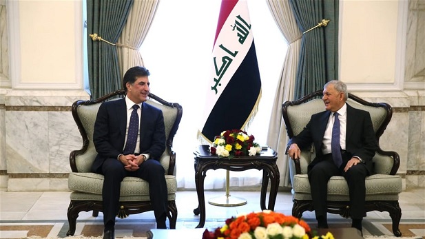 أكد رئيس الجمهورية عبداللطيف جمال رشيد، ورئيس إقليم كردستان العراق نيجرفان بارزاني، اليوم الثلاثاء، ضرورة تكاتف الجهود للحفاظ على استقرار البلد وسيادته.