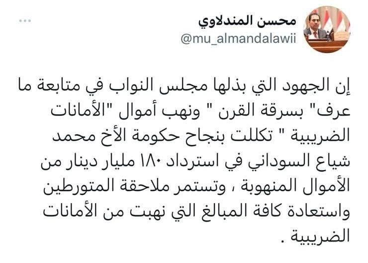 النائب الاول لرئيس مجلس النواب : جهود البرلمان تكللت بنجاح الحكومة باسترداد جزء من الاموال المسروقة ..