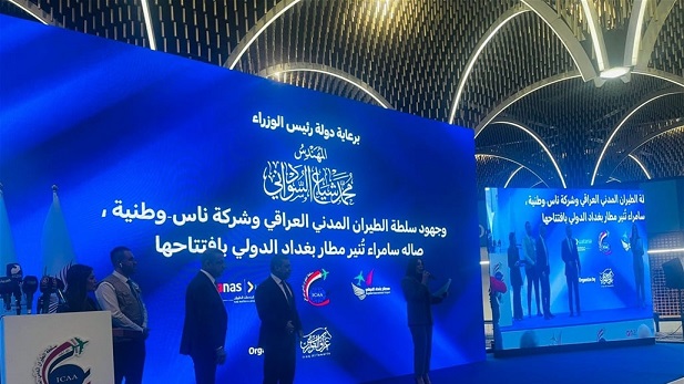 وفي وقت سابق، استقبلت صالة سامراء في مطار بغداد الدولي رحلة تجريبية أولى بمتابعة من قبل رئيس الوزراء محمد شياع السوداني.