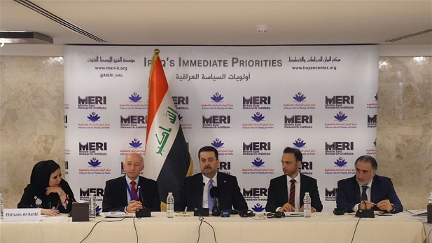 وقال مكتب السوداني في بيان، إن الأخير "حضر ورشة حوارية ضمّت عدداً من ممثلي مراكز البحوث والدراسات العربية والدولية في شتى الاختصاصات، عُقدت في العاصمة بغداد، وأدلى بحديث شامل استعرض رؤية الحكومة في المجال الاقتصادي وخطوات الإصلاح، ورؤيتها لواقع ومستقبل العلاقات الخارجية للعراق مع مختلف دول العالم والمنظمات الدولية".