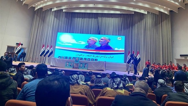 وقال ممثل رئيس الوزراء وزير العمل احمد الاسدي، خلال الحفل التأبيني لاستشهاد قادة النصر المقام في مجلس النواب: "ننقل تحيات رئيس الوزراء واعتذاره عن الحضور بسبب حضور قمة بغداد في الاردن ونحتفي اليوم بذكرى التأبينية الثالثة نحتفي بالثبات على المنهج والعقيدة واستعادة البطولات التي سطروها"، مضيفا ان "أبو مهدي المهندس كان مطيعاً للمرجعية الدينية".