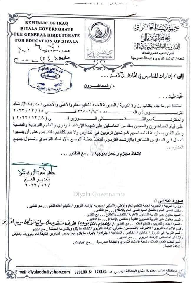 بالوثيقة.. التربية تمنع تكليف المرشدين التربويين من التدريس في المدارس