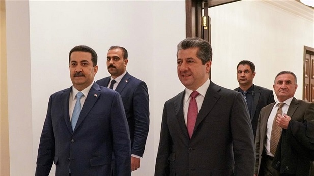 بحث رئيس مجلس الوزراء محمد شياع السوداني، مع رئيس حكومة إقليم كردستان مسرور بارزاني، اليوم الأربعاء، سبل التكامل في عمل الحكومتين الاتحادية والإقليم.