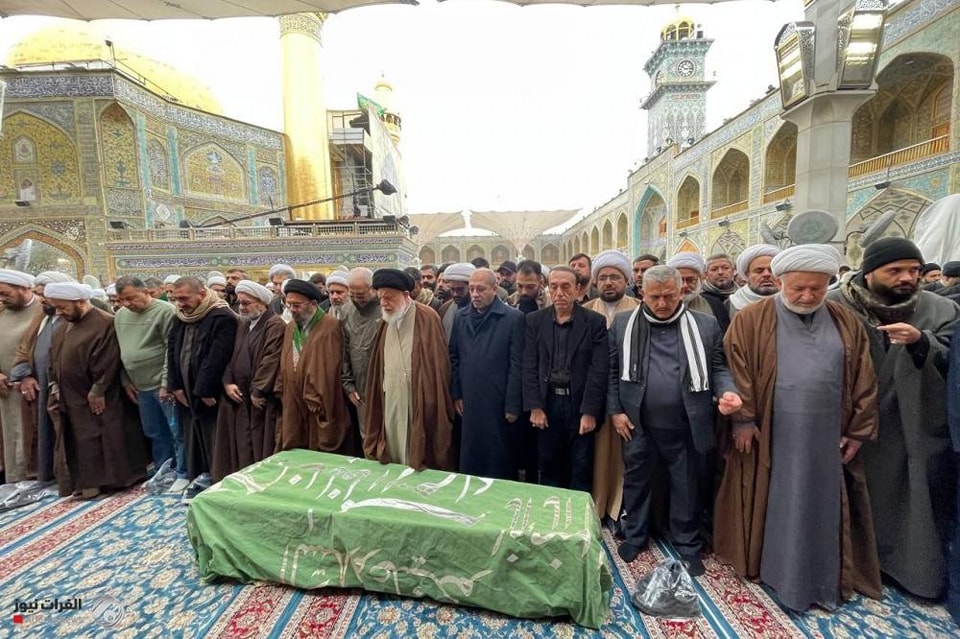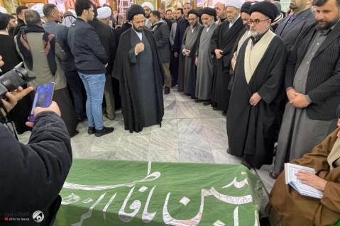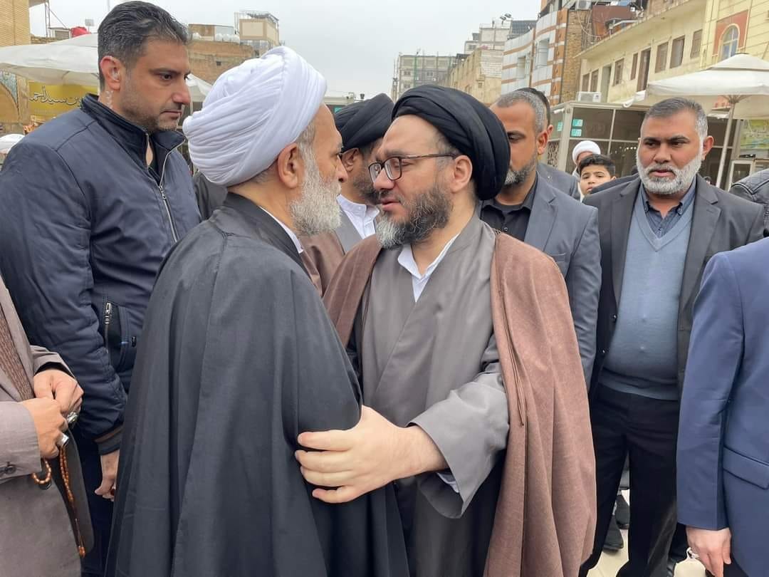 سماحة السيد محمد رضا السيستاني نجل المرجع الاعلى يعزي الشيخ جلال الدين الصغير بوفاة شقيقه الاكبر الشيخ الحاج الدكتور محمد حسين الصغير طاب ثراه