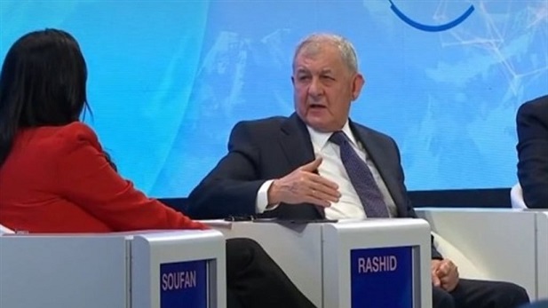 ونوه رئيس الجمهورية إلى أن "هناك شركات متعددة الجنسيات تعمل حالياً في العراق، ومن الممكن توسيع ذلك لشمول دول إقليمية وتقاسم المنافع بين هذه الدول".