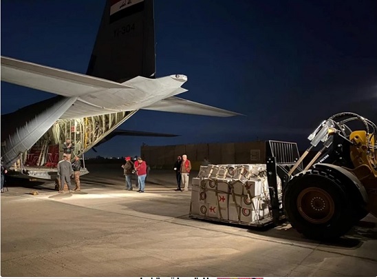 وصلت أول طائرة مساعدات عراقية محملة بـ 70 طنا من المواد الإغاثية لمساعدة المتضررين من الزلزال ومساندة عمليات الإغاثة جراء الزلزال.