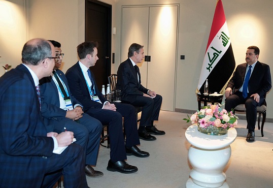 أكد رئيس مجلس الوزراء محمد شياع السوداني، اليوم السبت، لوزير الخارجية الأمريكي أنتوني بلينكن، أن الحكومة العراقية تسعى لعلاقات متوازنة لتثبيت الاستقرار بالمنطقة.