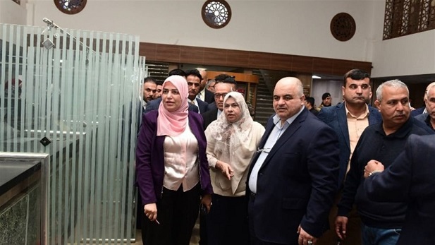 وبينت الوزارة بحسب البيان انه "شملت زيارة وزيرة المالية التجول داخل اروقة واقسام المصرفين وأستمعت الى مجموعة من الموظفين والمراجعين، ووجهت "بالنظر بطلبات واحتياجات المواطنين وتذليل العقبات امام اتمام معاملاتهم والحث على تبسيط الإجراءات وتقليل حلقات الروتين لضمان السرعة والدقة في تمشيه مصالح الزبائن والمواطنين كافة".