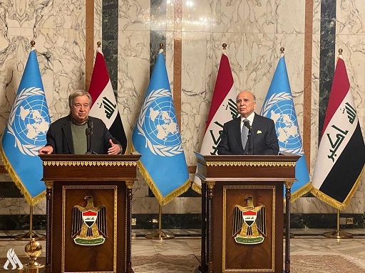 بدوره، قال حسين "نشكر الأمين العام للامم المتحدة زيارته إلى العراق"، مؤكداً أن "علاقة العراق مع الامم المتحدة قوية".