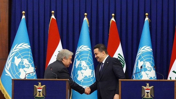 ثمن رئيس مجلس الوزراء، محمد شياع السوداني، اليوم الاربعاء، زيارة الامين العام لمنظمة الامم المتحدة، انطونيو غوتيريش، فيما اشار الى تطلع العراق لمزيد من الدعم الاممي.