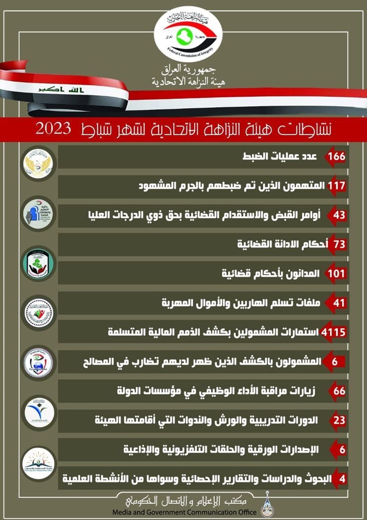 43 أمر قبض واستقدام قضائي بحق ذوي الدرجات العليا في شهر شباط