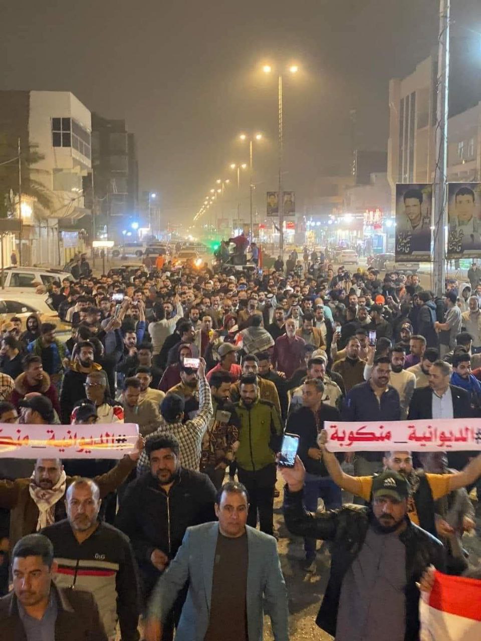تظاهرات ليلية عارمة في مدينة الديوانية على خلفية تردي الخدمات واستفحال البطالة في المحافظة