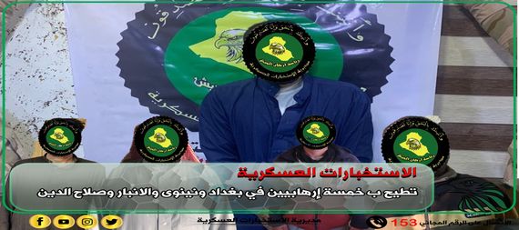 اطاحت الاستخبارات العسكرية بخمسة إرهابيين في بغداد ونينوى والانبار وصلاح الدين.