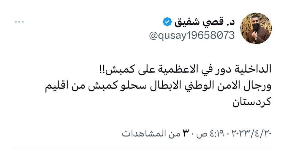 د.قصي شفيق مغرداً بعد اعتقال كمبش