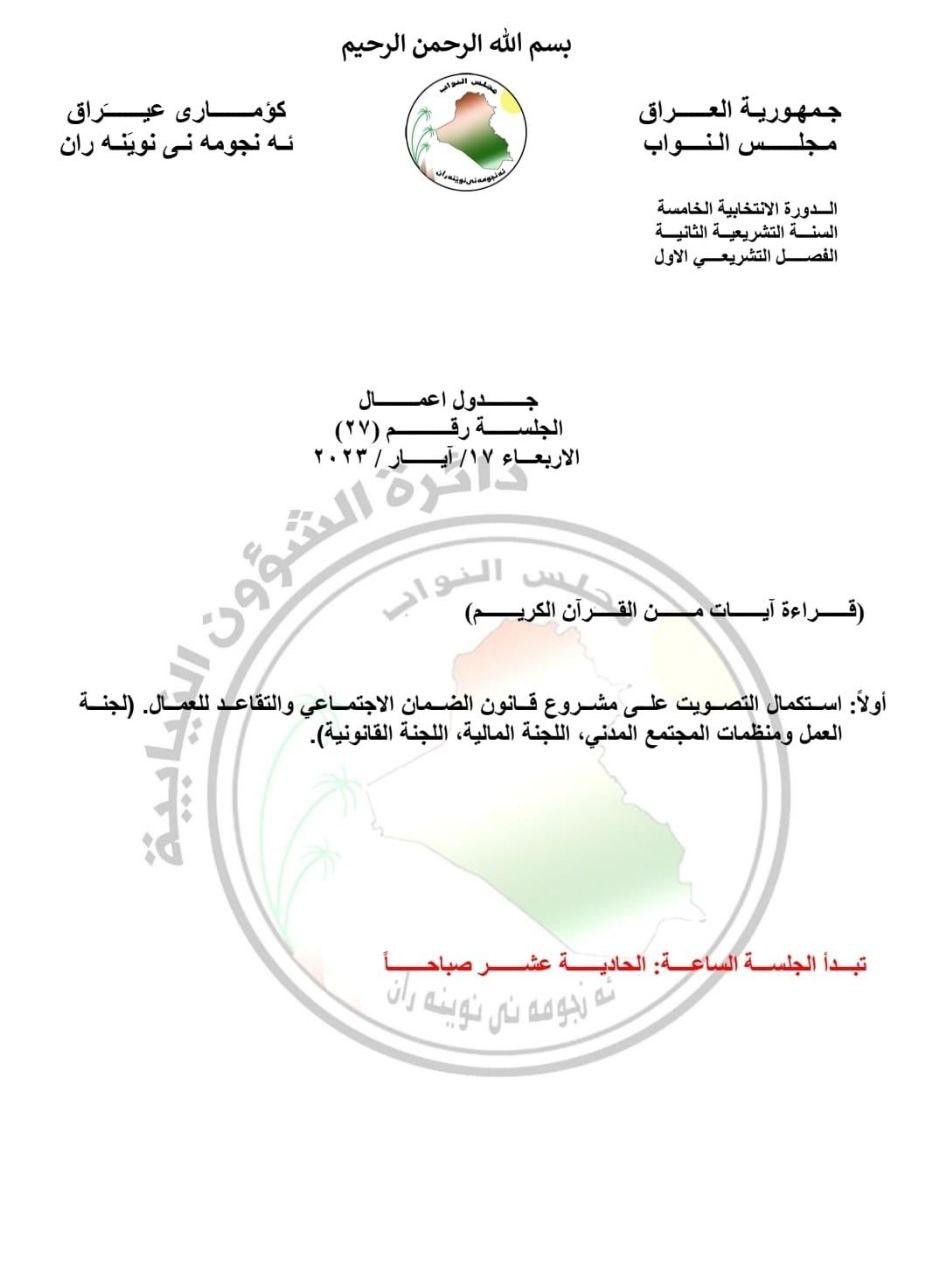 جدول أعمال جلسة البرلمان ليوم الأربعاء