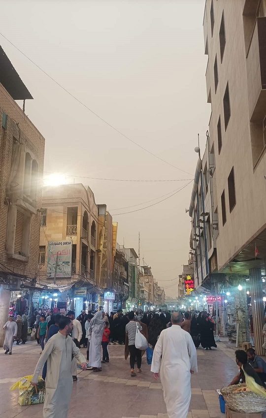ضربت عاصفة ترابية ورياح عالية الشدة، اليوم الاربعاء، العديد من المناطق في محافظة النجف الاشرف، منها المدينة القديمة.