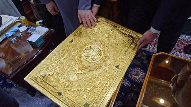 تسلم متحف الامام الحسين (عليه السلام)، نسخة نادرة من القرآن الكريم مصنوعة من الذهب والنحاس والماس والبلاتين والفضة اهديت من قبل أحد محبي اهل البيت.