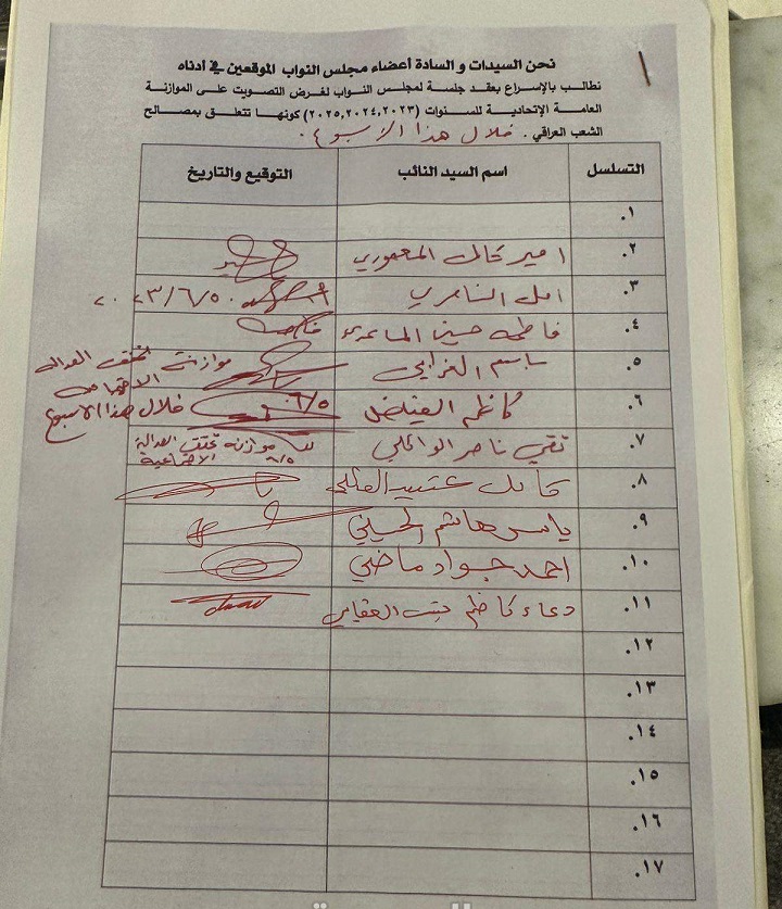 جمع عدد من النواب، اليوم الاثنين، تواقيع لتحديد موعد جلسة النواب الخاصة بالتصويت على الموازنة الاتحادية خلال هذا الأسبوع.