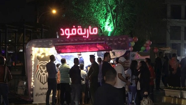 وتدير "ماريا" كشك لبيع الوجبات السريعة لطلبة الجامعات في إحدى مناطق العاصمة بغداد.