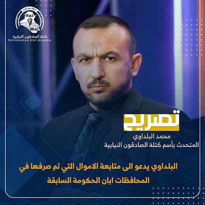 وقال البلداوي بحسب بيان للكتلة ، ان" اللجنة يجب ان تكون مركزية من مجلس الوزراء وتتفرع منها لجان فرعية تعمل على تقصي حقائق صرف الاموال في جميع المحافظات"، مشددا على "التقصي عن صرفيات قانون الامن الغذائي الذي صوتت عليه الحكومة السابقة، فضلا عن صندوق اعادة اعمار المناطق المحررة الذي يشوبه الكثير من الشبهات والخروقات".