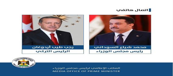 تلقى رئيس مجلس الوزراء محمد شياع السوداني، اليوم الجمعة، اتصالاً هاتفياً من رئيس الجمهورية التركية رجب طيب أردوغان، جرى خلاله بحث العلاقات الثنائية بين البلدين وسبل تعزيزها.