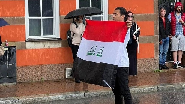نظم مجموعة من الشباب العراقيين، اليوم الخميس، وقفة امام السفارة العراقية بالعاصمة السويدية ستوكولهم؛ احتجاجاً على مساعي حرق القرآن والعلم العراقي.