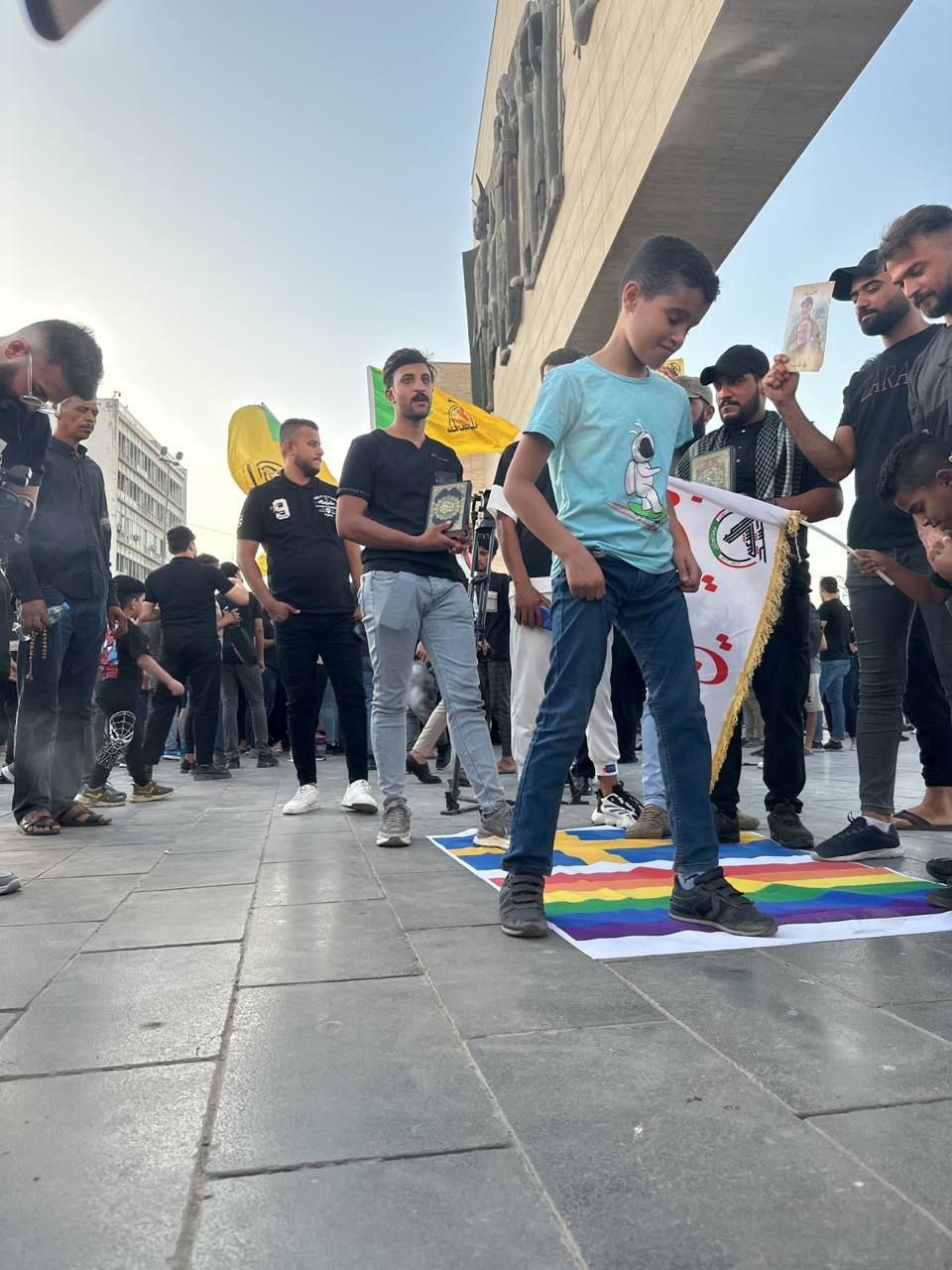 بالصور ..غضب شعبي عراقي من الاساءة للقرآن والرموز الدينية في ساحة التحرير