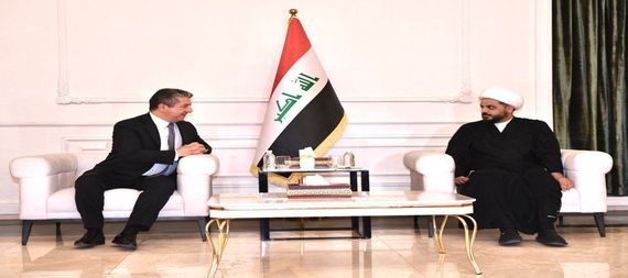 زار رئيس حكومة إقليم كردستان مسرور بارزاني آمين عام عصائب أهل الحق الشيخ قيس الخزعلي في مكتبه لبحث عدد من الملفات واوضاع البلاد