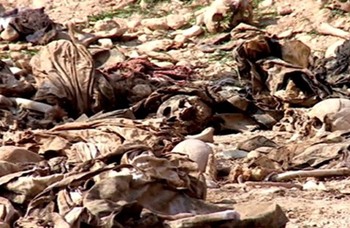 وبين أنه "بعد إجراء الحفر التشخيصي، تم العثور على جثتين دفنتا بطريقة شرعية وعند التحقق من خلال إفادات الشهود في المنطقة تبين أنَّ المقبرة تعود لشهداء من ضحايا جرائم الإرهاب الذين قتلوا على يد العصابات الإرهابية خلال الأعوام 2005 ولغاية 2008 في قضاء الصويرة، حيث دفنوا في هذه المنطقة كونهم مجهولي الهوية ويقدر عددهم بأكثر من 45 شهيداً".