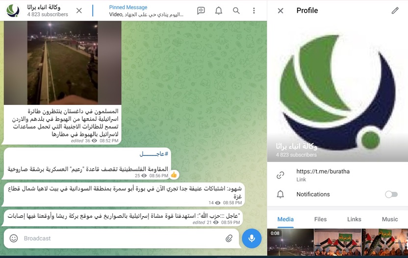 تسترعي وكالة انباء براثا انتباه الاخوة القراء والذين يتصفحون موقع وكالة انباء براثا الى ان الوكالة تقوم بنشر الاخبار العاجلة عن الحرب المقدسة التي تخوضها المقاومة الاسلامية الفلسطينية ضد الكيان الصهيوني في قناتها على التليكرام من دون نشرها في موقع الوكالة الرئيسي حيث يتم نشر المقاطع الفيديوية والصور التي ترد الوكالة ويتم نشرها مباشرة وللاطلاع على قناة الوكالة على التليكرام يمكنكم الدخول على هذا الرابط للانضمام