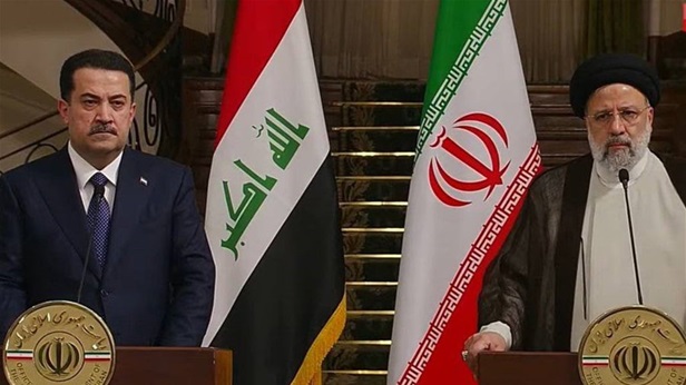 وقال رئيسي، في مؤتمر صحفي مشترك مع السوداني في طهران، إن "العلاقات بين العراق وإيران تشهد تطوراً كبيراً"، لافتاً الى أن "رئيس الوزراء العراقي يعمل على تطبيق الاتفاقية الأمنية الموقعة بين العراق وإيران".