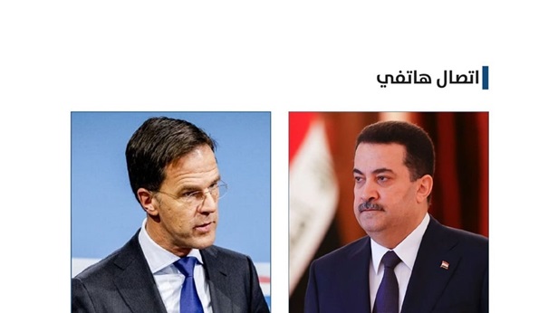 وذكر المكتب الإعلامي لرئيس مجلس الوزراء، في بيان ان "السوداني تلقى اتصالاً هاتفياً من رئيس الوزراء الهولندي مارك روته، جرى فيه البحث في تطورات الأحداث بقطاع غزّة".